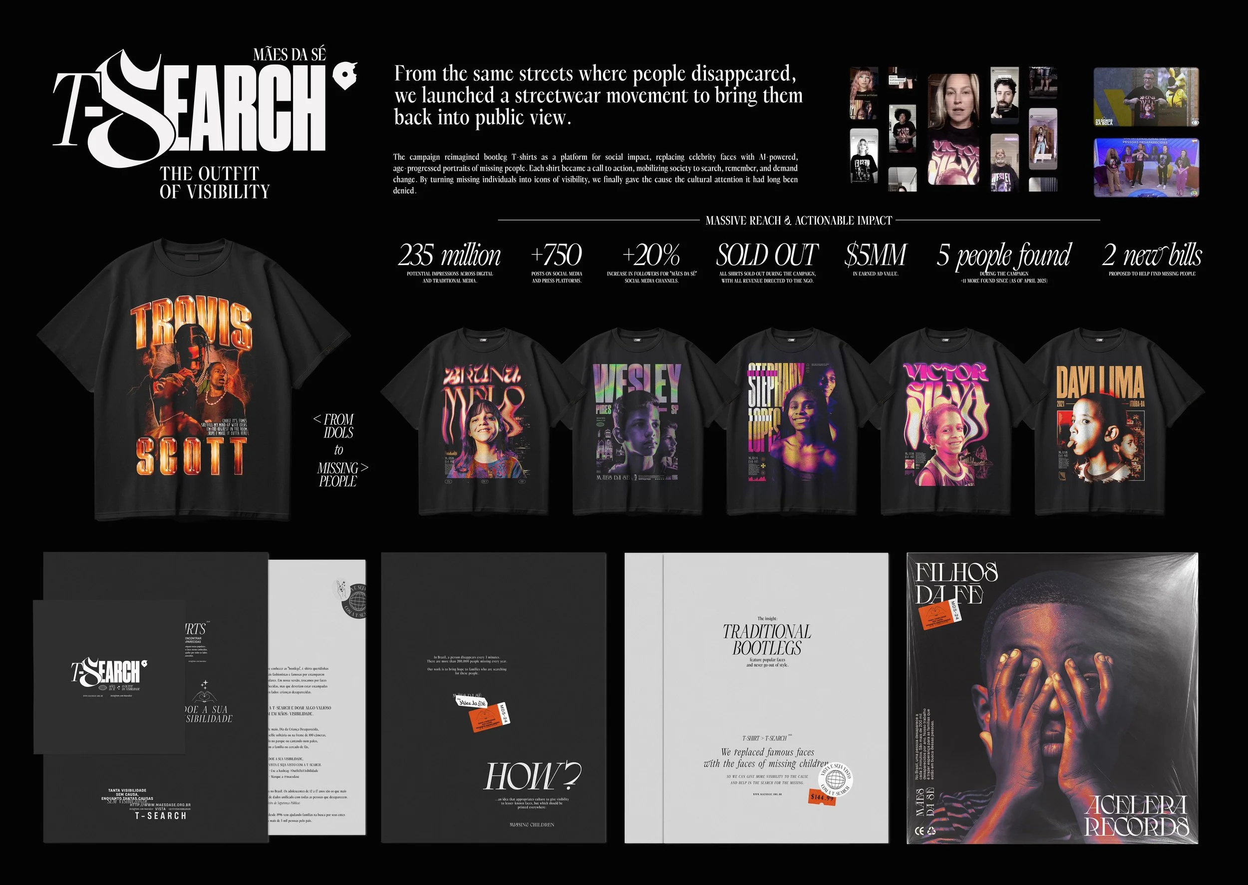 Yo, in Brazil, fame runs the game. Influencers blow up, mediaâs nonstop, but real struggles? They stay in the dark. We hype faces, trends, clicksâbut whereâs the noise for the ones who vanished? Bootleg T-Shirts been killinâ the scene. Street-born, underground heat, now every celeb wanna rock âem. But we ainât just ridinâ the waveâwe flippinâ it. Turninâ hype into hope. We takinâ that celeb love and puttinâ faces that need to be seen on T-Searchs. Not just merchâthis a movement.